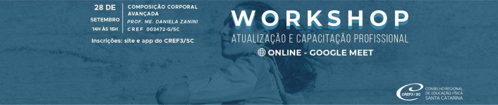 Quer saber mais sobre Composição Corporal Avançada? Venha para o Workshop de Atualização Online no dia 28 de setembro, ministrado pela Profa. Me. Daniela Zanini (CREF 003472-G/SC), das 14h às 16h, na Plataforma Google Meet. O curso, que seria realizado no dia 18/09, foi transferido para o dia 28/09, mas as inscrições já realizadas continuam valendo!