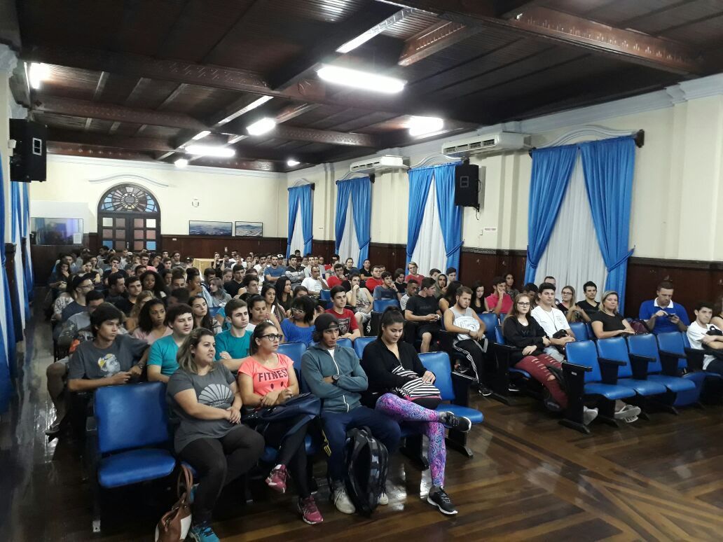 Aproximadamente 150 alunos da 1º fase de bacharelado e licenciatura em Educação Física da Unisul Tubarão participaram na noite de ontem, 10 de abril, de palestra realizada pelo 2º vice-presidente do CREF3/SC, Jean Carlo Leutprecht (CREF 000012-G/SC), com apoio da coordenadora do Curso, Luciane Lara Acco (CREF 005945-G/SC).