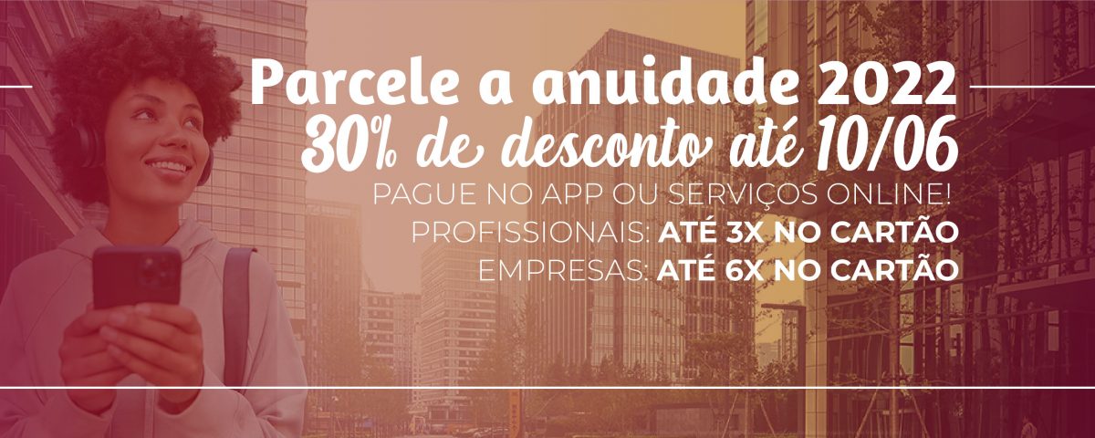 O desconto é válido para profissionais e empresas inscritos até 31/12/21, novos registros e formandos seguem a resolução.