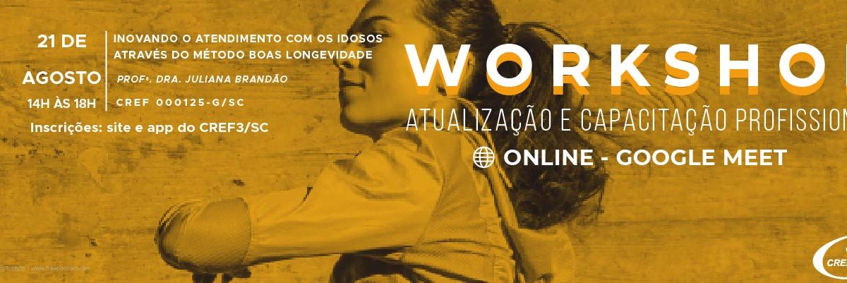 Atenção alunos do Workshop de Atualização Online “Inovando o atendimento com os idosos através do método B.O.A.S Longevidade”, que estava sendo ministrado hoje, 21/08, pela Profa. Dra. Juliana Brandão (CREF 000125-G/SC), na Plataforma Google Meet: por conta de um problema técnico, informamos que o curso será transferido para o dia 26/08, das 18h às 22h.