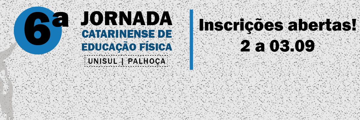 Conectando pessoas, o CREF3/SC realiza a 6ª Jornada Catarinense de Educação Física, nos dias 2 e 3 de setembro. O evento retorna à Unisul Pedra Branca com 20 cursos, no maior encontro promovido pelo Conselho em Santa Catarina. Vem com a gente atualizar seus conhecimentos em dois dias intensos de muito aprendizado, com temas pensados especialmente para os profissionais e acadêmicos da área.
