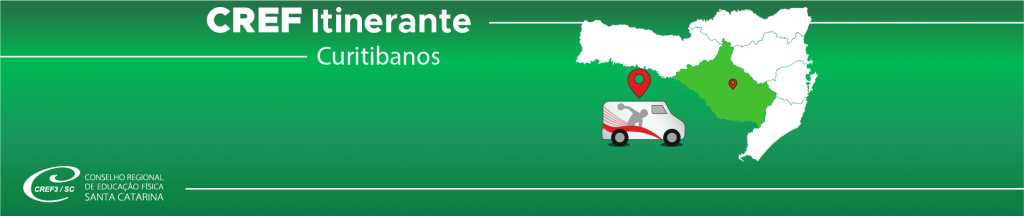 O CREF Itinerante estará em Curitibanos no dia 27 de julho, durante a 21ª OLESC – Olimpíada Estudantil Catarinense. Profissionais que precisem resolver pendências de forma presencial com o Conselho, podem renovar a Cédula de Identidade Profissional, realizar o registro de Pessoa Física e Jurídica, negociar pendências, retirada de certidões, além de tirar dúvidas sobre fiscalização e sobre a regulamentação da atividade profissional de Educação Física.