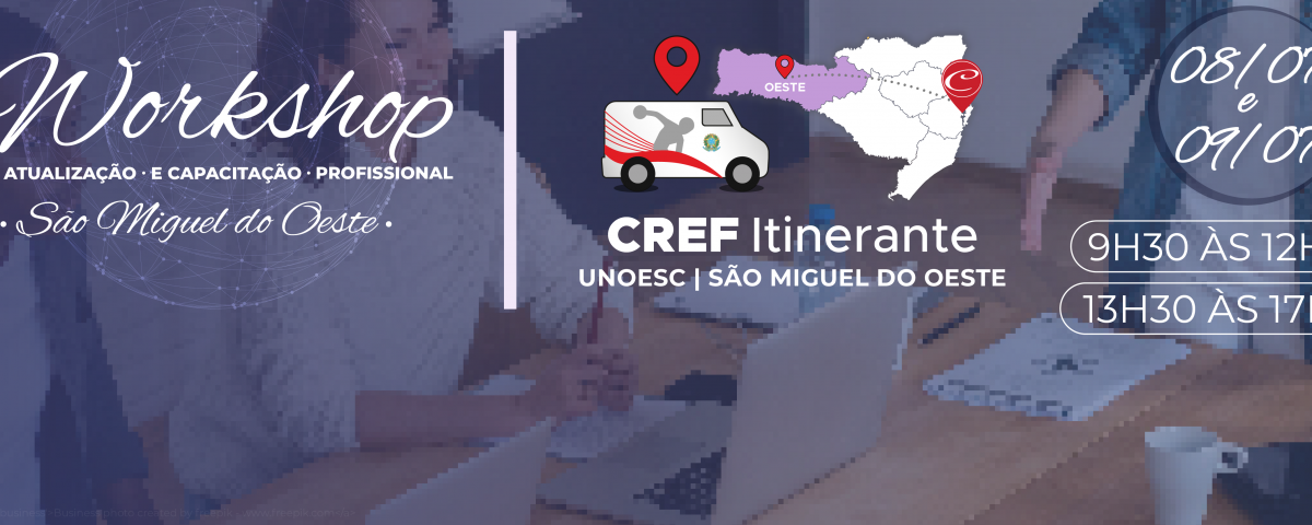 Profissionais que precisem resolver pendências de forma presencial com o Conselho, podem aproveitar o CREF Itinerante que estará nos dias 8 e 9 de julho, na Unoesc, em São Miguel do Oeste, durante o Workshop de Capacitação e Atualização Profissional. Aproveite para renovar a Cédula de Identidade Profissional, realizar o registro de Pessoa Física e Jurídica, negociar pendências, retirada de certidões, além de tirar dúvidas sobre fiscalização e sobre a regulamentação da atividade profissional de Educação Física.