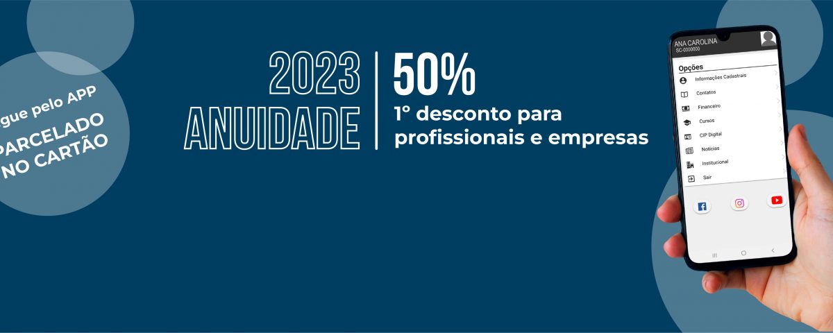 O valor da anuidade para 2023 é de R$ 603,07 para profissionais e R$ 1.490,40 para empresa. O primeiro desconto para profissionais será de 50%, com vencimento em 10/04/2023. Já para as empresas, o desconto de 50% vai até 10/07/2023, não coincidindo com a anuidade profissional. O desconto é válido SOMENTE para profissionais e empresas registradas até 31/12/22, de acordo com a Resolução n° 0225/2022/CREF3/SC.