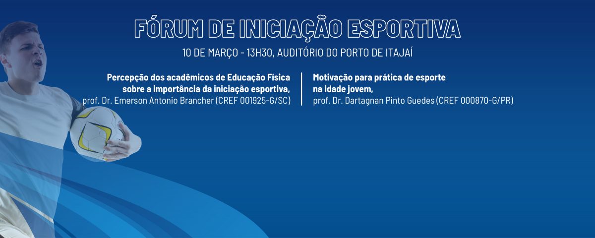 O CREF3/SC e a Fundação Municipal de Esporte e Lazer de Itajaí realizam o Fórum de Iniciação Esportiva, no dia 10 de março, das 13h30 às 17h30, no auditório do Porto de Itajaí. Com os temas “Percepção dos acadêmicos de Educação Física sobre a importância da iniciação esportiva”, ministrado pelo prof. Dr. Emerson Antonio Brancher (CREF 001925-G/SC), e “Motivação para prática de esporte na idade jovem”, com o prof. Dr. Dartagnan Pinto Guedes (CREF 000870-G/PR), o evento pretende debater os fundamentos da iniciação esportiva e sua relevância no ensino da Educação Física.