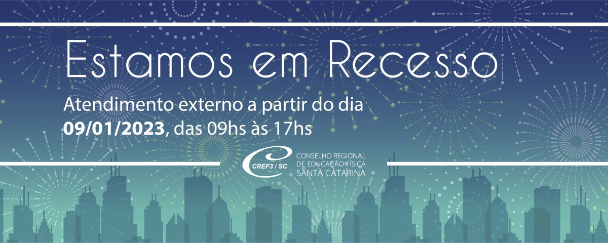 Devido ao período de recesso, o CREF3/SC estará fechado até o dia 4 de janeiro de 2022. O Conselho retomará o atendimento externo no dia 9 de janeiro, das 9h às 17hs.