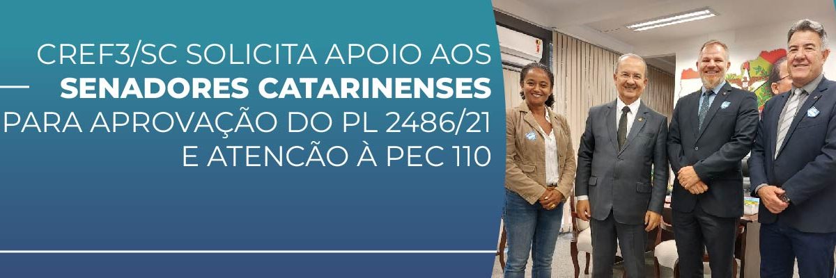 O presidente do CREF3/SC, Emerson Brancher (CREF 001925-G/SC) e o secretário geral do CREF3/SC, Jean Carlo Leutprecht (CREF 000012-G/SC), em agenda em Brasília, visitaram os gabinetes dos senadores catarinenses Dario Berger, Esperidião Amin e Jorginho Melo, ontem, 15 de março. O objetivo foi solicitar apoio dos senadores para a aprovação do Projeto de Lei nº 2486/21, que altera a Lei nº 9.696, de 1º de setembro de 1998, que pretende oferecer segurança jurídica a? manutenção e ao funcionamento dos Conselhos Federal e Regionais de Educação Física. Na oportunidade, também solicitaram atenção à PEC 110, que trata da reforma tributária e que pode gerar um aumento significativo nos custos tributários sobre serviços para profissionais e empresas.