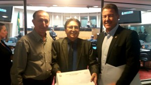 Nas fotos, os conselheiros com o deputado Antonio Aguiar (PMDB), autor do Projeto de Lei Complementar (PLC) 26/2014 e o presidente da Assembleia Legislativa de Santa Catarina, Silvio Dreveck (PP).