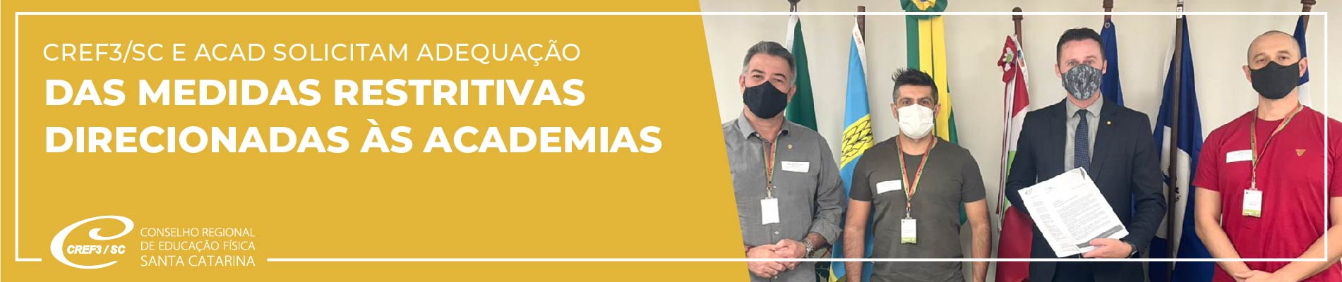 Um ofício foi entregue ao deputado com todas as proposições e sugestões de alteração e revogação de artigos, seguindo as recomendações sanitárias mas com o objetivo de melhorar a funcionalidade e sustentabilidade dos estabelecimentos, bem como aumentar a disponibilidade de horários para os usuários dos estabelecimentos. Participaram da reunião com o deputado, o secretário geral do CREF3/SC, Jean Carlo Leutprecht (CREF 000012-G/SC), e os profissionais de Educação Física Luciano Rigotti Signori (CREF 010626-G/SC) e Gener Luz Junior (CREF 028136-G/SC), representando a ACAD Brasil.