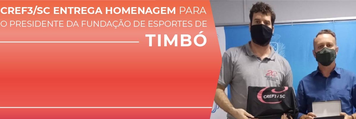 Na tarde de ontem, 10 de agosto, o chefe do departamento de Eventos/Comunicação, Robison Nunes, entregou uma homenagem do Conselho para o presidente da Fundação Municipal de Esportes de Timbó, Márcio Elísio (CREF 003164-G/SC), em agradecimento pelo apoio da prefeitura na realização do CREF Itinerante, que estava ontem na cidade.