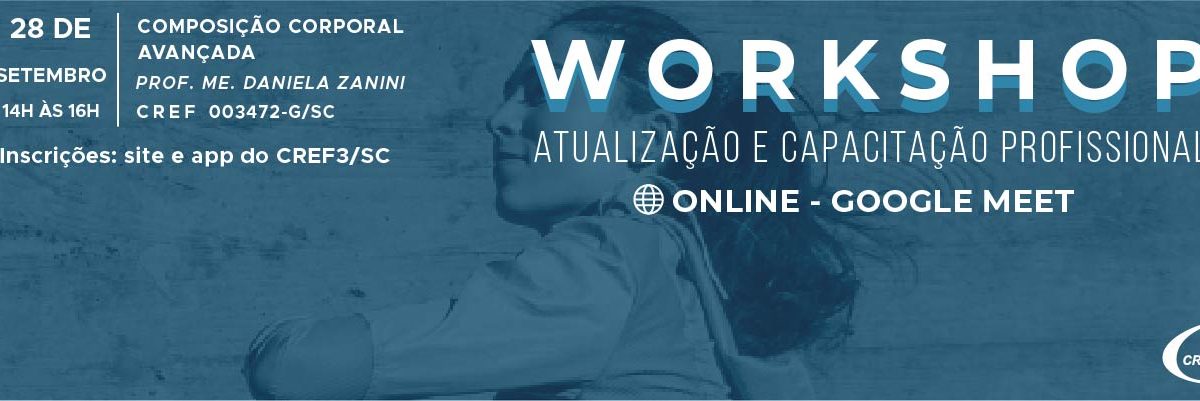 Quer saber mais sobre Composição Corporal Avançada? Venha para o Workshop de Atualização Online que acontece hoje, 28 de setembro, ministrado pela Profa. Me. Daniela Zanini (CREF 003472-G/SC), das 14h às 16h, na Plataforma Google Meet.