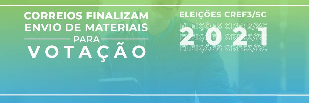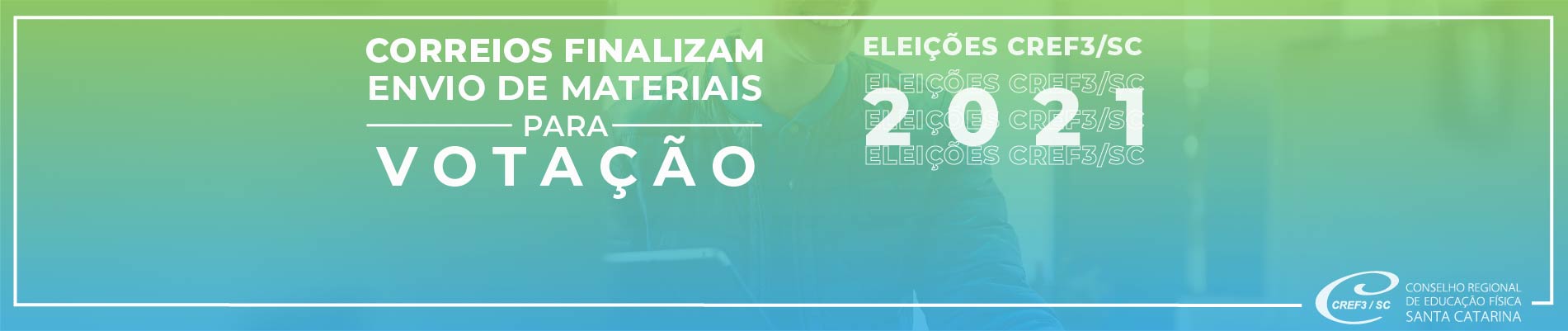 Os Correios finalizaram na última sexta, 20 de agosto, o envio do material para votação das Eleições 2021 aos profissionais de Educação Física. Confira se seu nome está na listagem de Aptos a votar e, caso não receba o material até o dia 5 de setembro, verifique seu endereço no APP do CREF3/SC ou nos Serviços Online e entre em contato com CREF3/SC no e-mail crefsc@crefsc.org.br. Até o dia 10 de setembro ainda será possível atualizar seu endereço para receber em casa a cédula-voto.