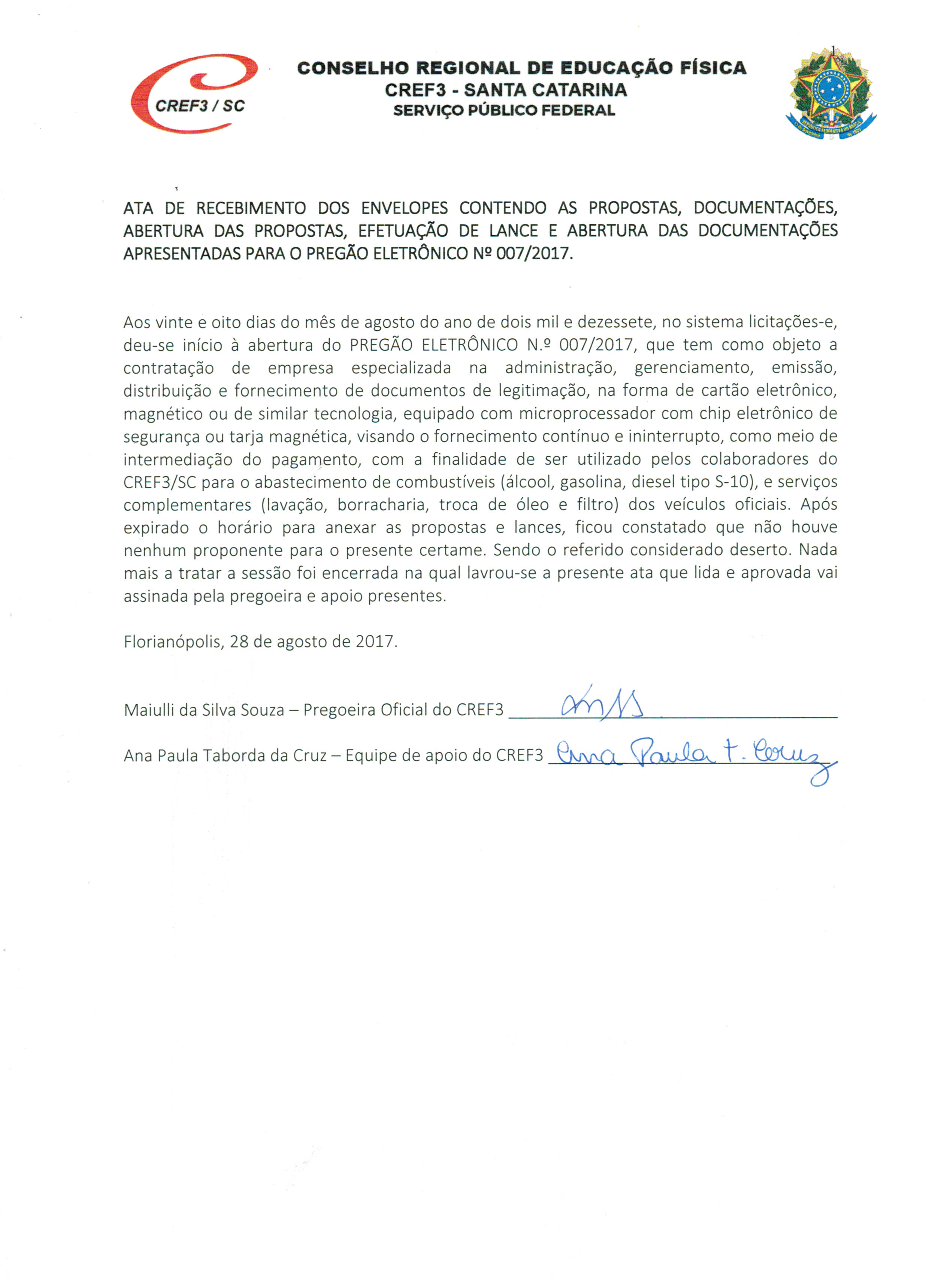 OBJETO: Contratação de empresa prestadora de serviços de planejamento operacional, organização, coordenação, execução, logística de eventos com disponibilização de espaço para execução e coquetel, para evento a ser realizado pelo CREF3/SC na data de 28 de agosto de 2015