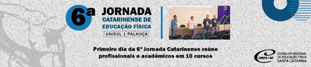 Começou! Dez cursos abriram o primeiro dia da 6ª Jornada Catarinense de Educação Física, que acontece até amanhã, na Unisul Pedra Branca, em Palhoça. Vem com a gente atualizar seus conhecimentos em dois dias intensos de muito aprendizado, com temas pensados especialmente para os profissionais e acadêmicos da área!