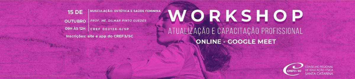 Para conhecer as diferenças anatômicas, fisiológicas e biomecânicas entre os sexos, além da escolha dos exercícios mais eficientes para as preferências femininas, o CREF3/SC realiza o Workshop de Atualização Online “Musculação: estética e saúde feminina”, ministrado Prof. Me. Dilmar Pinto Guedes (CREF 002126-G/SP), no dia 15/10, das 9h às 12h, na Plataforma Google Meet.